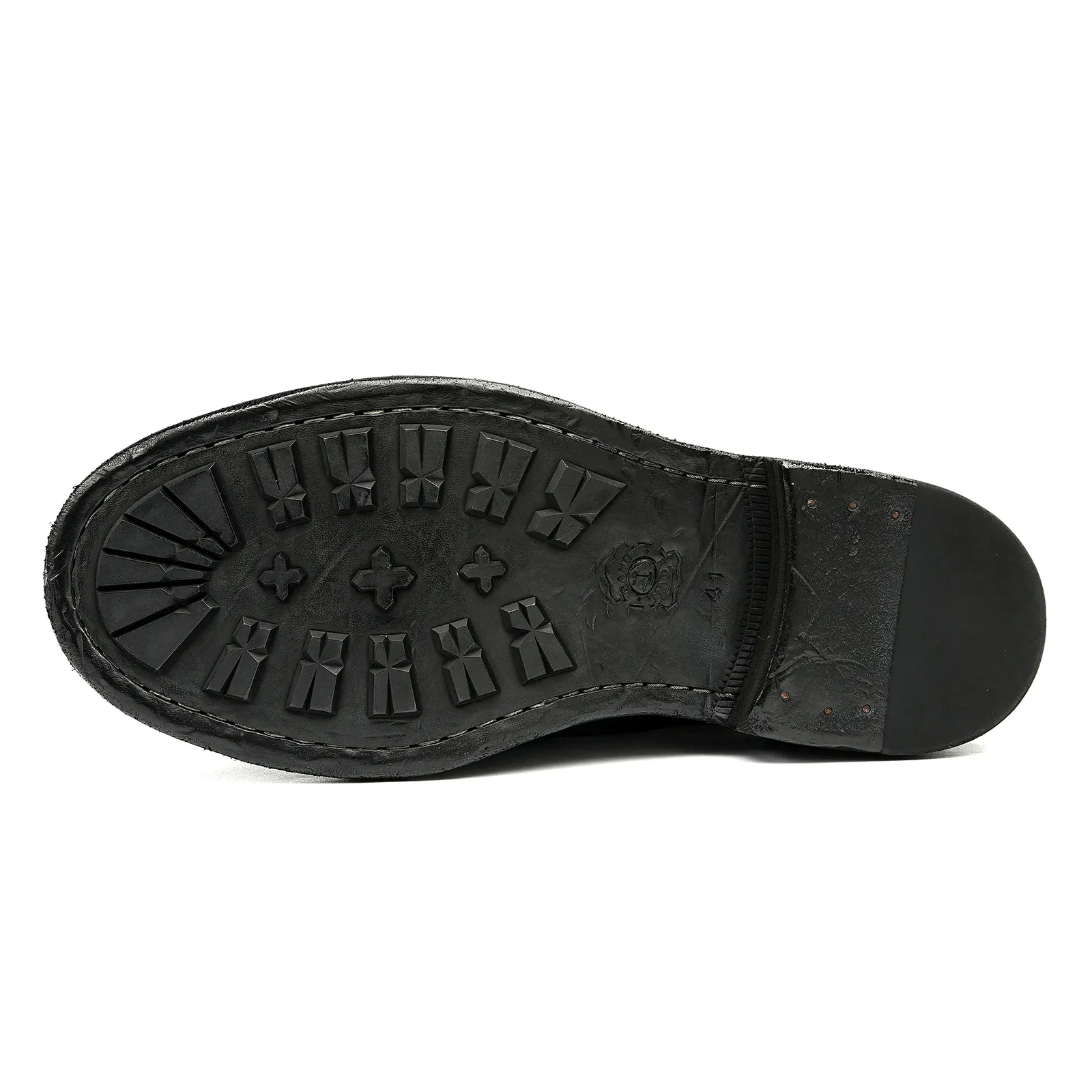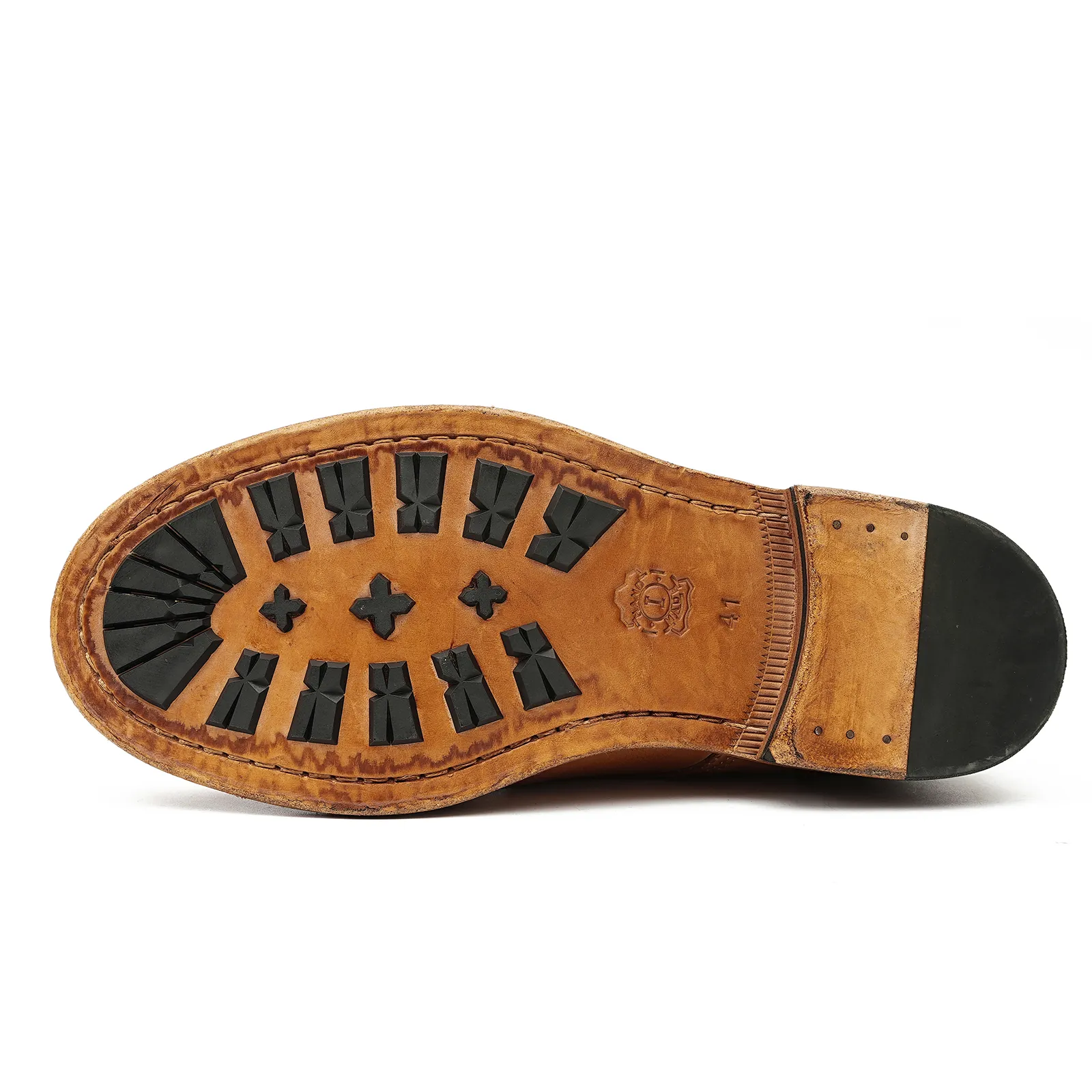 ④ Solid Rubber + Leather Outsole for stability and long-lasting wear